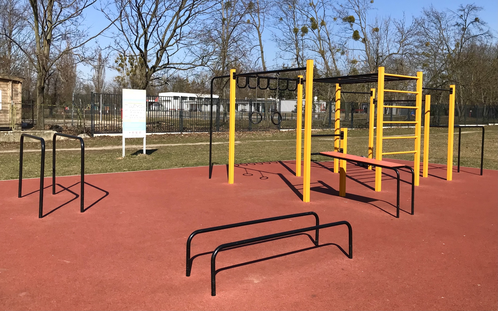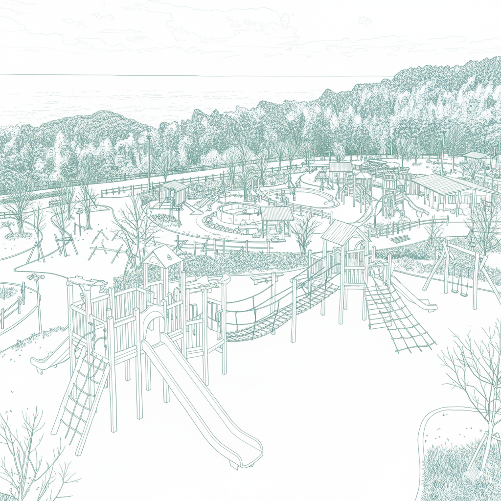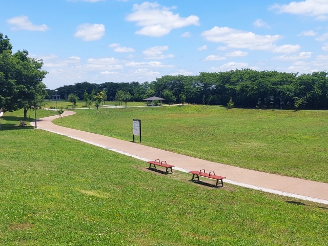 ランニングコースや、年齢別に遊べる学童用・幼児用アスレチックがあり、