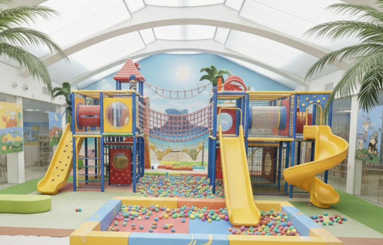 さらに、元気いっぱいに体を動かせる室内アスレチックも完備しており、雨の日でも思いっきり遊べます。