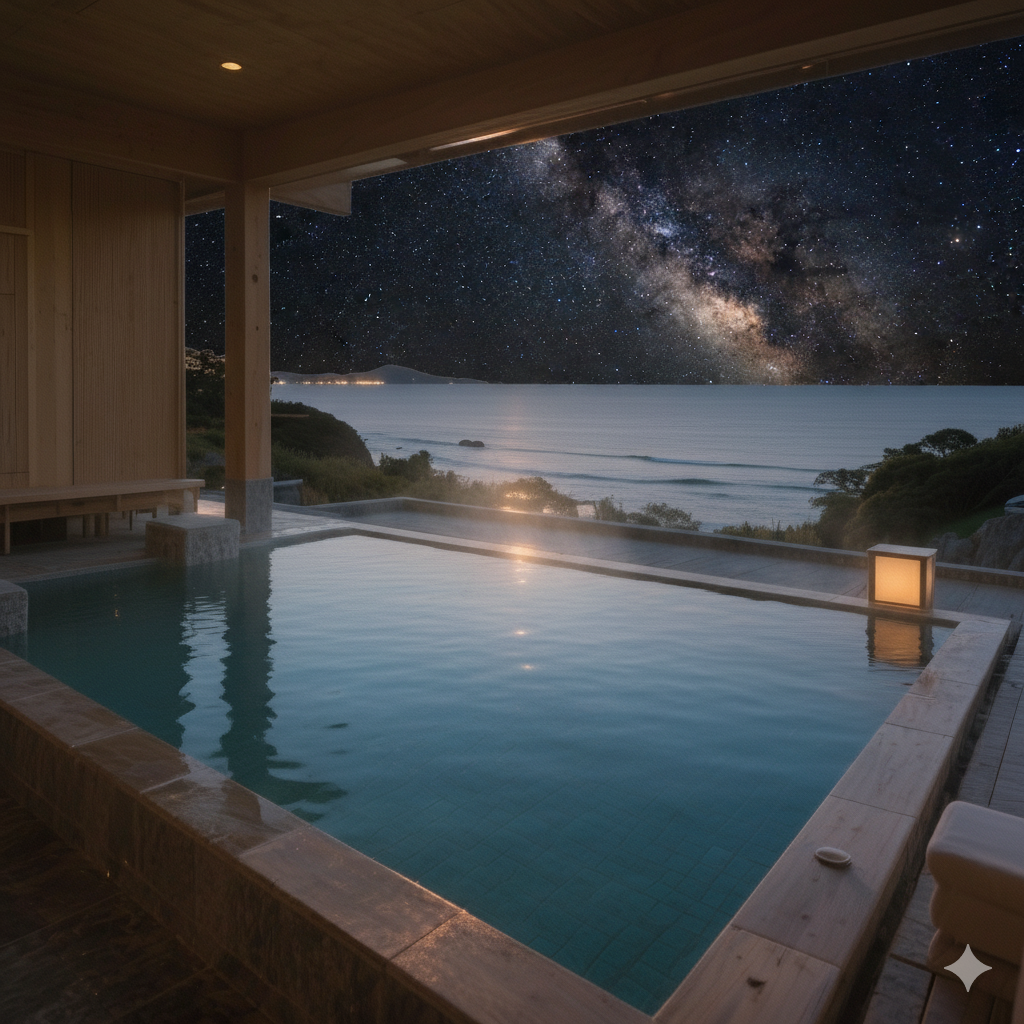 海と空、そして心身が深くコネクトする、極上の癒やしをご提供。 コネクトの湯 最大の魅力は、海と空が一体となる絶景露天風呂。水平線から昇る朝日が黄金色に輝く日の出の時間はもちろん、昼は海原の煌めき、夕暮れは燃えるような空、夜は満天の星空と、時とともに表情を変える景色が自慢です。 良質な温泉に身を委ね、潮風と波の音に包まれるひととき。日頃の疲れ、旅の疲れを心ゆくまで癒し、自分をリセットする特別な時間をお過ごしください。