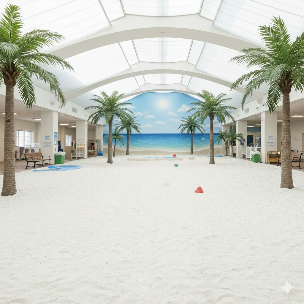 温泉熱で一年中ポカポカと温かい白浜の砂場では、まるで本物のビーチにいるかのように砂遊びを満喫できます。
